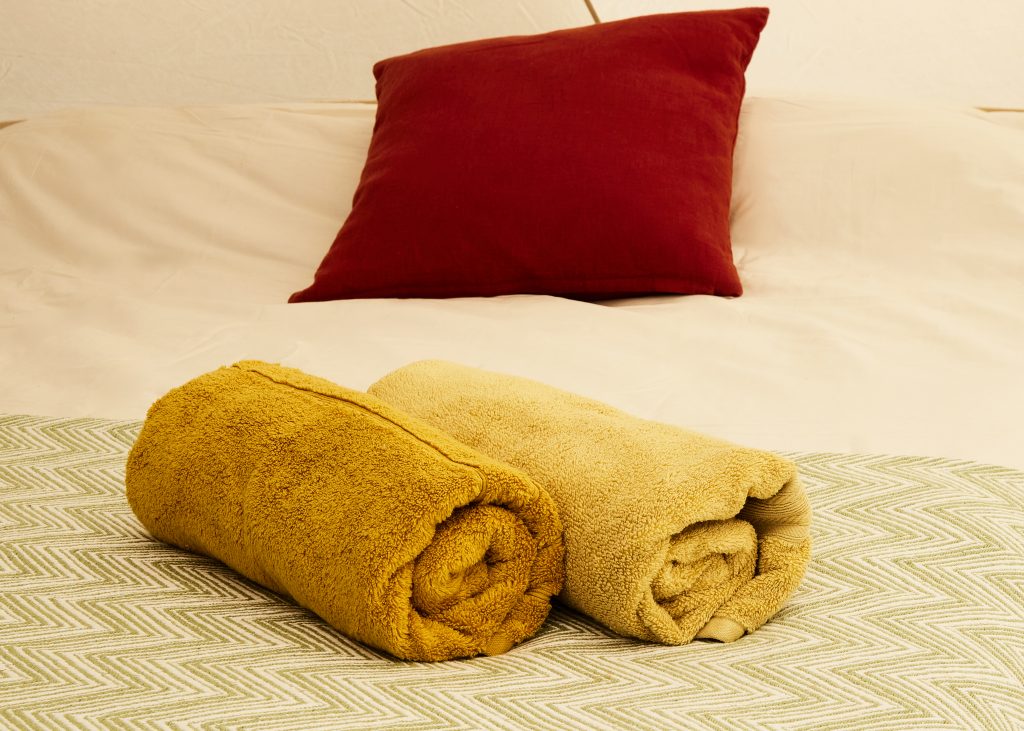 Enjoy a fully equipped tent with cosy furnishings for a relaxing stay.